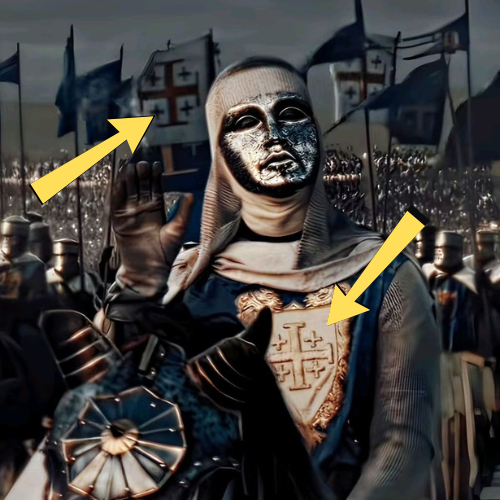 Baldwin ruled a thriving crusader state and succeeded in protecting it from the Muslim ruler Saladin. The Jerusalem cross was part of the Crusaders coat of arms at the Jerusalem Kingdom, that represents Christ's command to spread the Gospel around the world. It is a busy collection of five crosses that represent the four evangelists, Matthew, Mark, Luke and John, with Christ in the center Christianity (central cross) broadcast by missionaries to the four corners of the world.